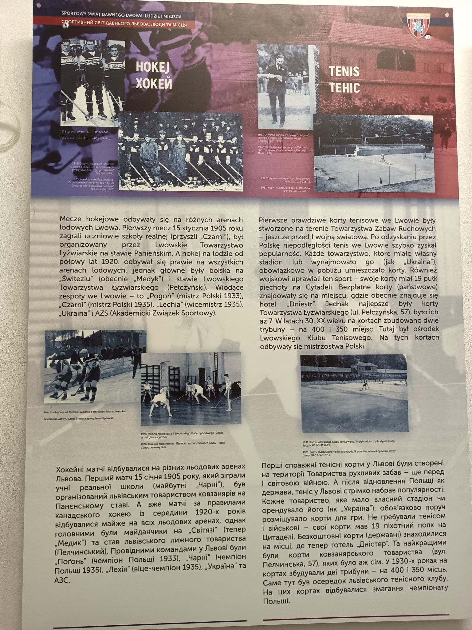 Wiele ciekawych rzeczy można dowiedzieć się o dawnych stadionach we Lwowie między innymi Pogoni, Czarnych, Hasmonei. Tych obiektów już w tej chwili nie ma, tym bardziej cenne są ich archiwalne zdjęcia.