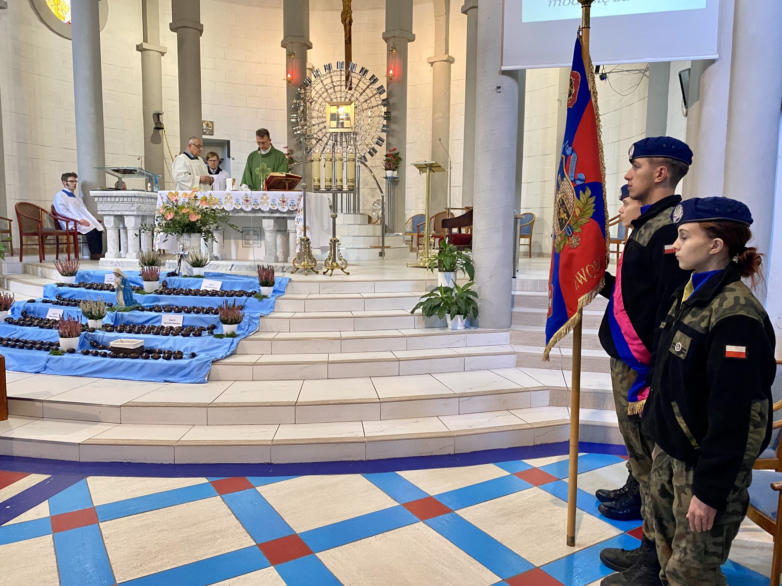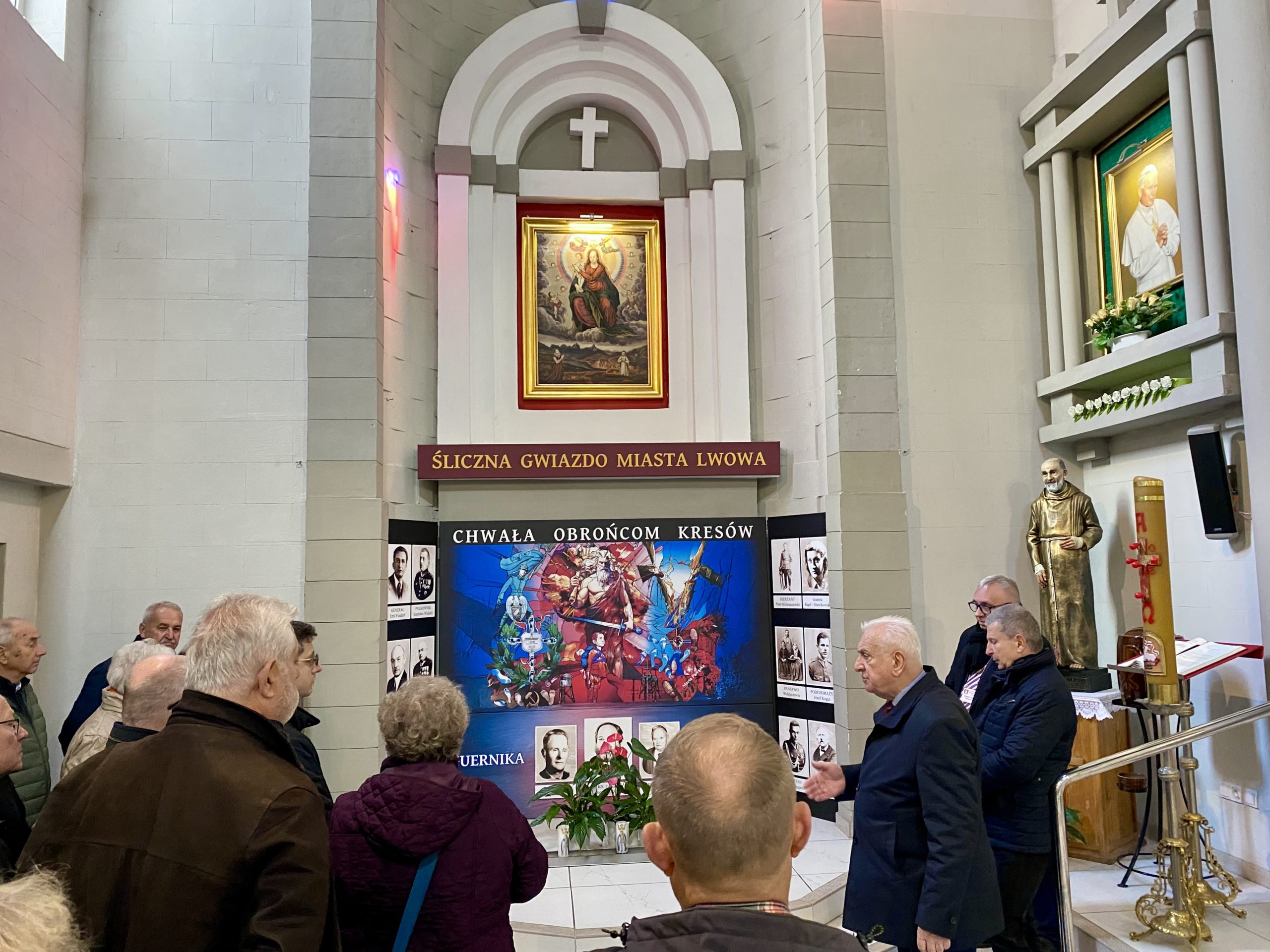 W Sanktuarium Matki Boskiej Łaskawej delegatów i gości oraz Poczet Sztandarowy Zarządu Głównego przywitał ksiądz kanonik Marek Olejniczak, proboszcz sanktuarium i kapelan TMLiKPW Oddział w Częstochowie. Słowo Boże wygłosił ksiądz Tomasz Cisowski wskazując różne postaci patriotyzmu będące fundamentem i gwarantem istnienia polskiego narodu. Dalej w modlitwie wiernych wybrzmiało – módlmy się: za naszych rodaków zamordowanych przez ukraińskich nacjonalistów na Wołyniu, Podolu i w Małopolsce Wschodniej, aby Dobry Pan obdarzył ich wiecznym szczęściem i radością w niebie; za zmarłych członków naszej rodziny kresowej, aby znaleźli w niebie wszystko co było im drogie za życia; za wszystkich uczestników tego Zgromadzenia Eucharystycznego, aby wytrwale pielęgnowali wiarę i niezachwianie trwali w jedności i prawdzie – Ciebie prosimy, wysłuchaj nas Panie. Końcowym akordem modlitewnego skupienia było podziękowanie dla księdza kapelana za dar trwania przy nas i królewska laudacja wygłoszona przez Adama Kiwackiego na cześć Matki Boskiej Łaskawej Lwowskiej.